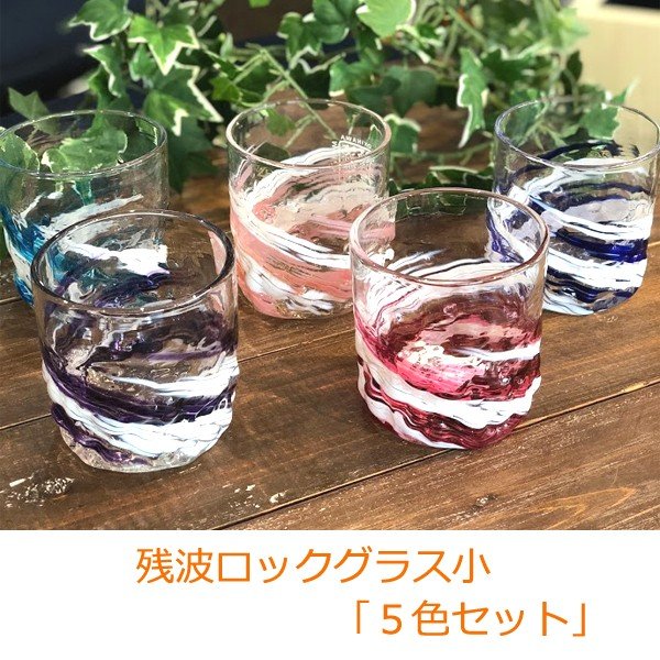 琉球ガラス 残波ロックグラス小5色 セット